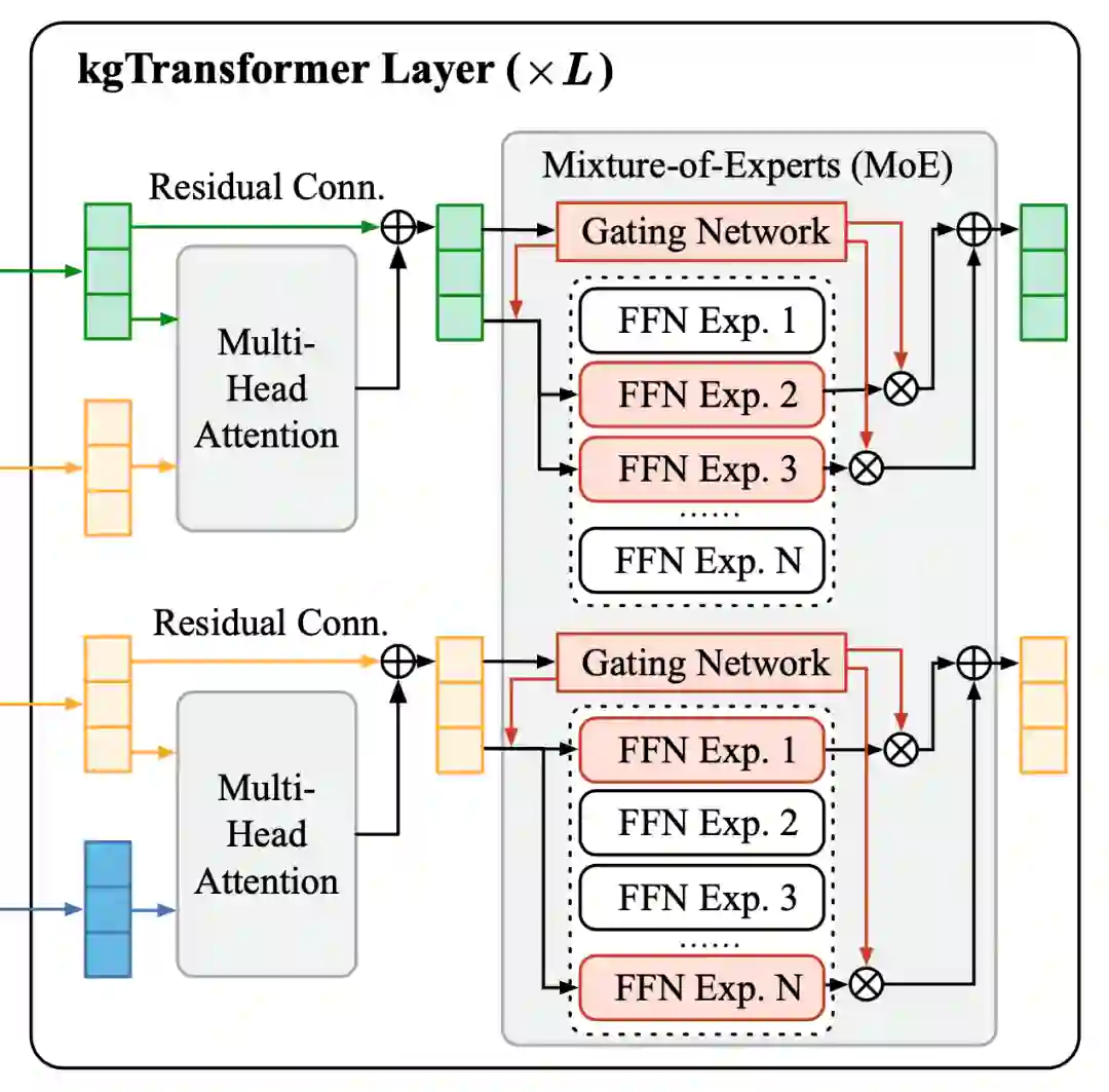 1. kgTransformer:提出了 kgTransformer,使用 Triple Transformation 策略来将知识图谱带有属性的边(relation)转换为不带属性的有向边;提出了 MoE 来顺应 GNN 稀疏激活的特性。