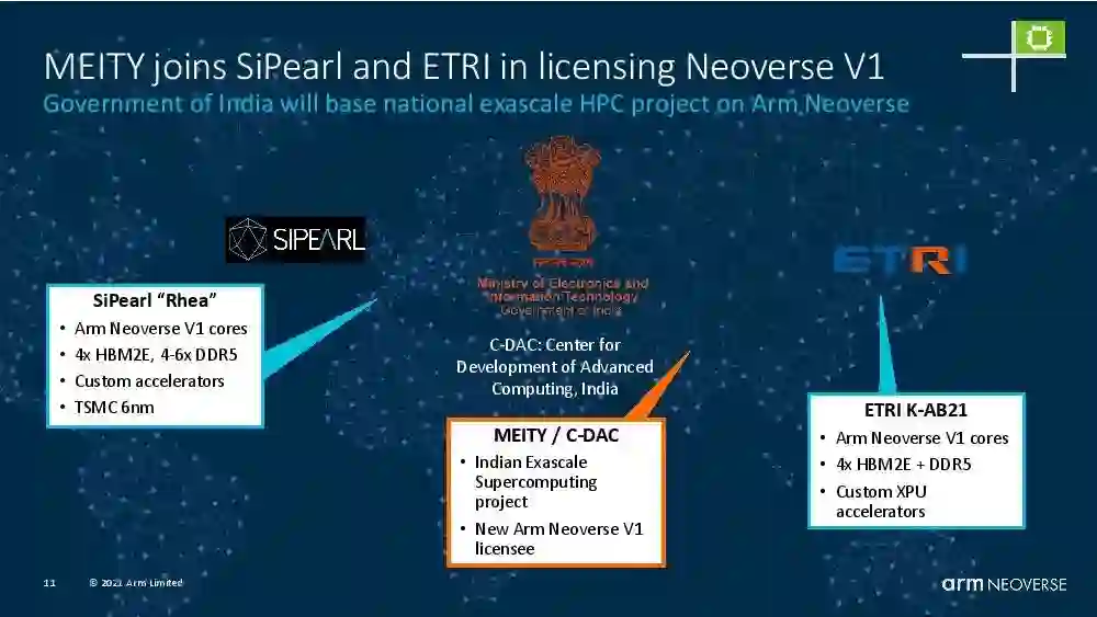 印度电子和信息技术部(MeitY)宣布,将与 SiPearl 和 ETRI 一起为V1的国家级高性能计算项目颁发许可证。