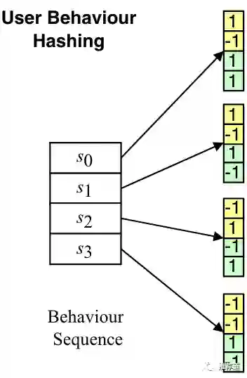 所示,聚合方法就是先按位相加,再做L2-normalization。这样,就把user behavior sequence存储成若干buckets。