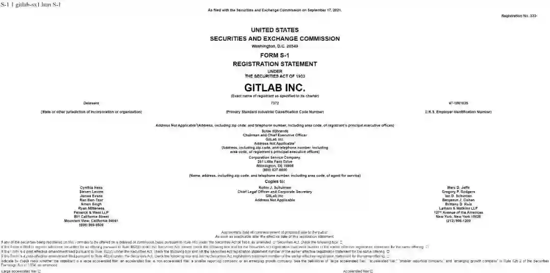 在提交的上市文件中,GitLab 将此次发行的规模设定为 1 亿美元,不过,这个数据会在股票销售条款确定后发生变化。