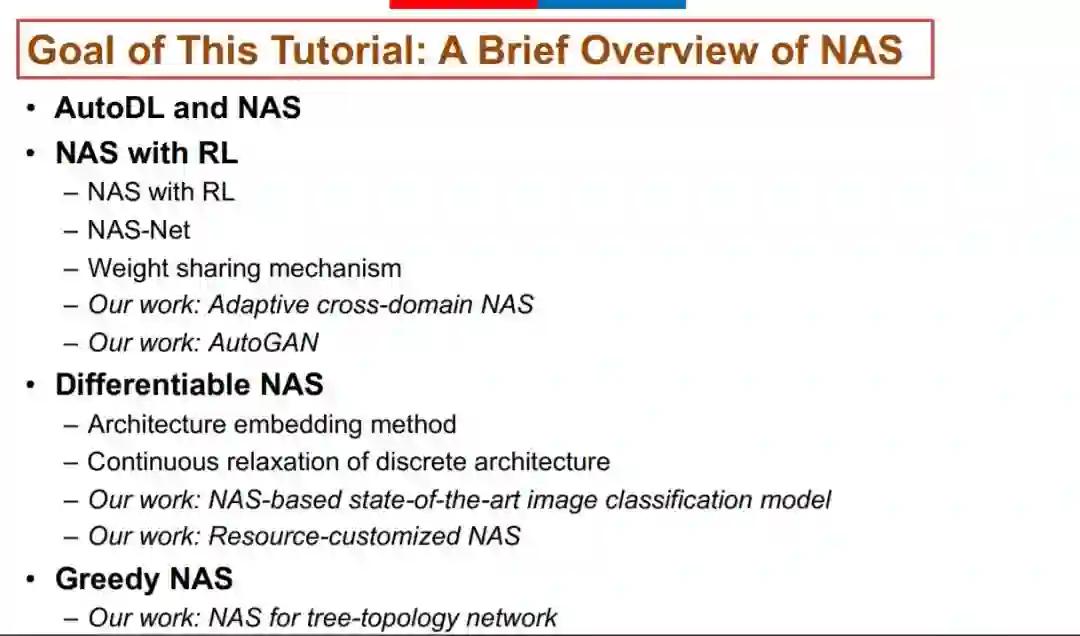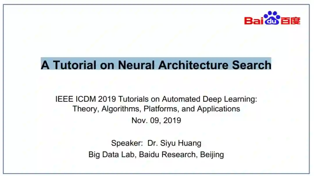 【导读】百度研究院大数据实验室窦德景博士等人给了关于自动深度学习的教程包括AutoDL的理论、算法、平台和应用,共132PPT,涵盖神经架构搜索、迁移学习和元学习,以及深度学习模型压缩。该教程将包括对最先进的算法和系统的全面调研。是了解工业界学术界的最好自动深度资料。