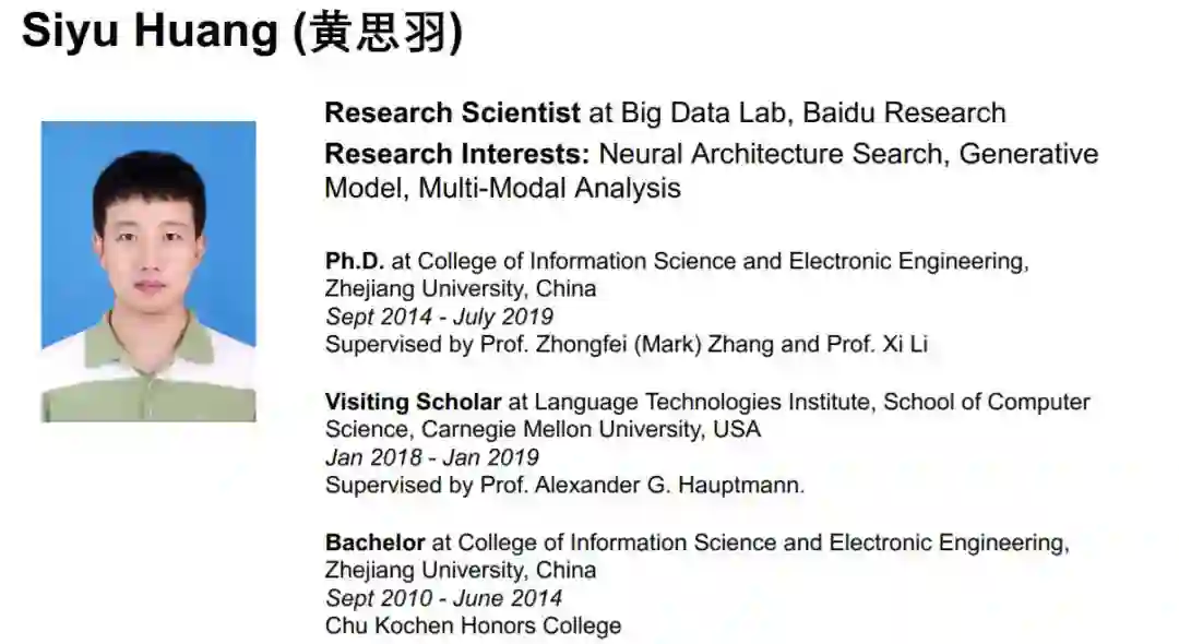 其他讲者包括:Dr. Jun Huan,Dr. Siyu Huang,Dr. Di Hu,Mr. Xingjian Li,Dr. Haoyi Xiong,Dr. Boyang Li