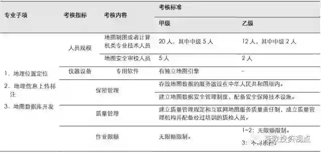 至少要有 2 名具备省级地图安全审校资格的人员,乙级资质单位更适合从事大众类的LBS 服务,这也符合 check in 、手机地图、手机导航等众多 LBS 应用商的现实情况, 即专注于应用层面的开发和运营。而包括基础地图数据的处理和维护,甚至地图 API 接口在内,都是与更专业的甲级资质单位进行 B2B 的合作,直接调用。没有地图资质的单位,也可通过与拥有甲级或乙级资质的单位合作,取得相应的使用授权。