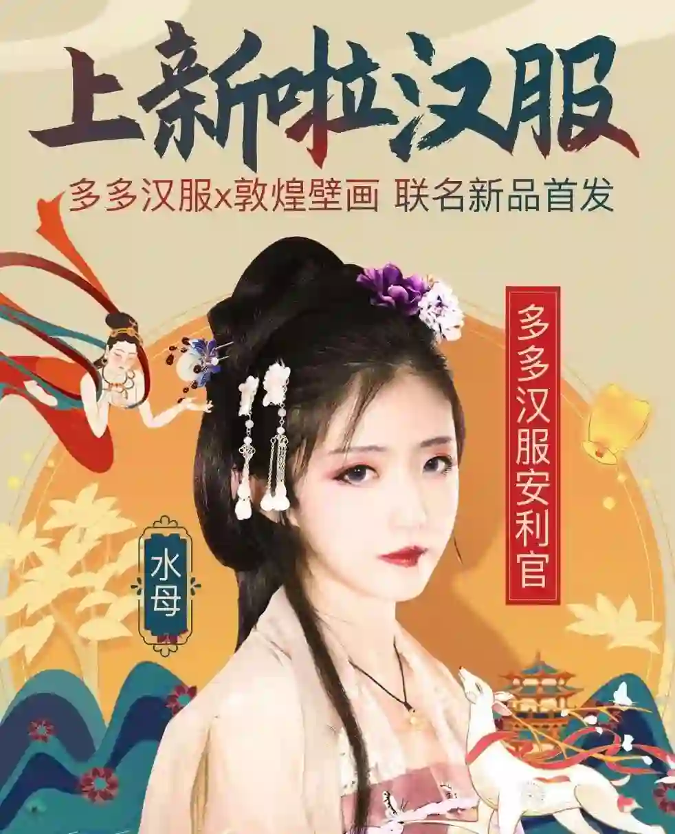 36氪获悉,6月9日18点,拼多多将联合敦煌莫高窟壁画和曹县汉服,在拼多多服饰类目官方直播间合作推出“多多汉服×敦煌壁画”联名新品。从昨日起至6月11日,拼多多“上新啦!汉服”系列活动将持续进行。