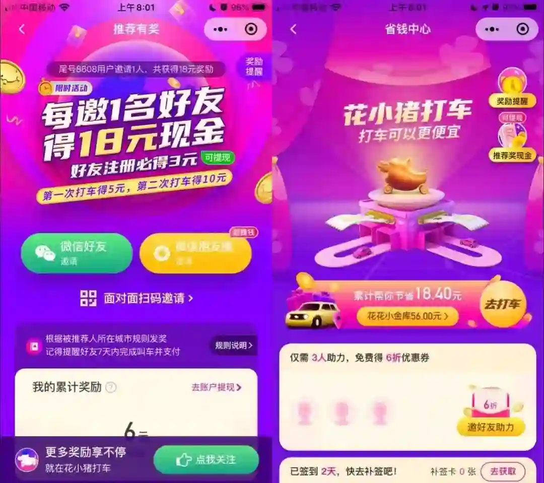 花小猪作为出行领域的拼多多,在产品各种活动上完美的让用户感知到了拼多多的味道。