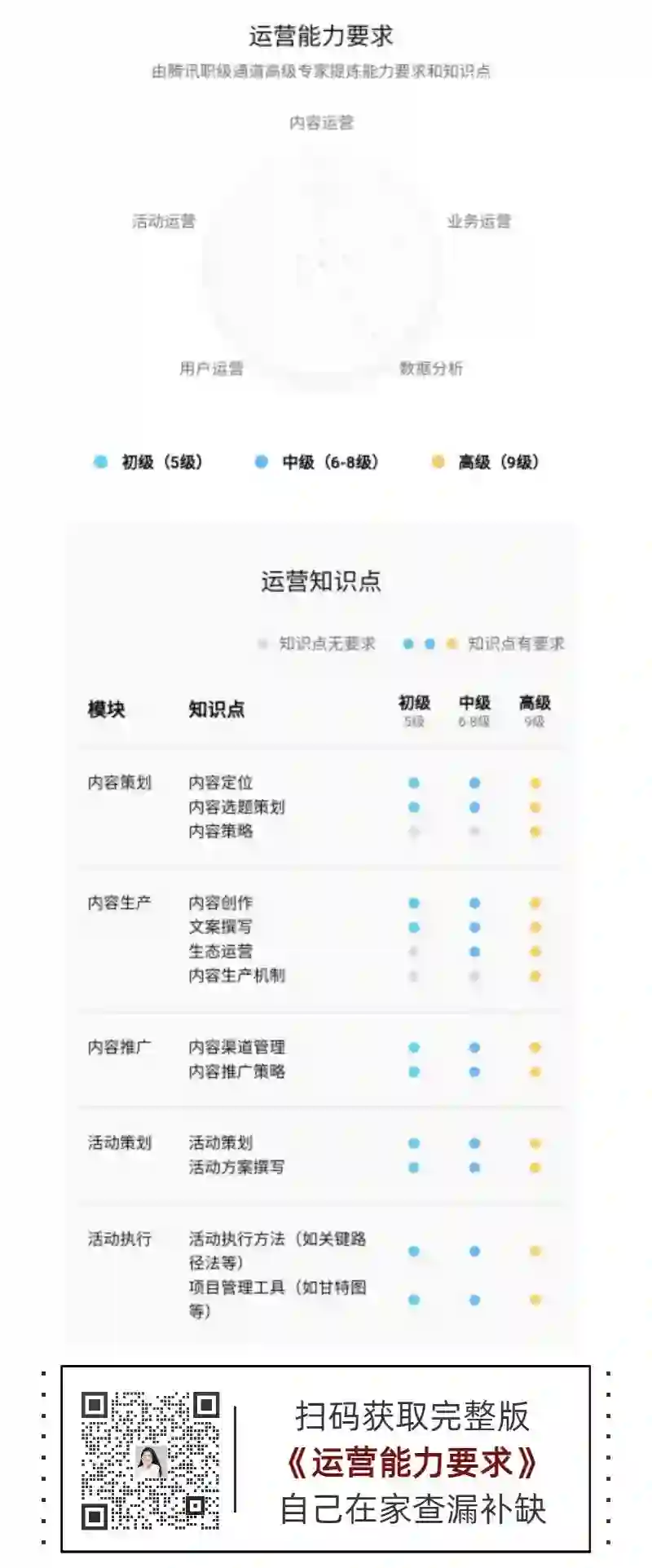 小编手头上有一份腾讯运营职级要求(见下图),从里面帮大家总结出来几个大厂能力项,大家可以先参照一下: