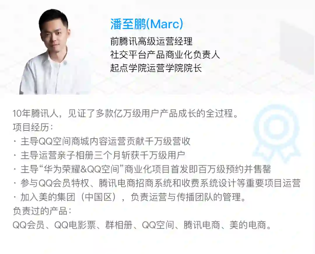 在此推荐 腾讯课堂&起点课堂 联合办学,专为运营人打造的《90天互联网运营实战班》直播课程。