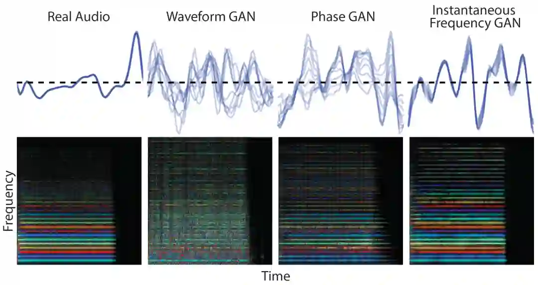 在 GANSynth ICLR 论文中,我们用一系列频谱表示来训练 GAN。结果发现对于高度周期性声音(比如音乐中的那些),为相位分量生成瞬时频率 (IF) 的 GAN 在表现上胜过其他模型和强基线,被超过的模型包括生成波形的 GAN 和无条件的 WaveNet。