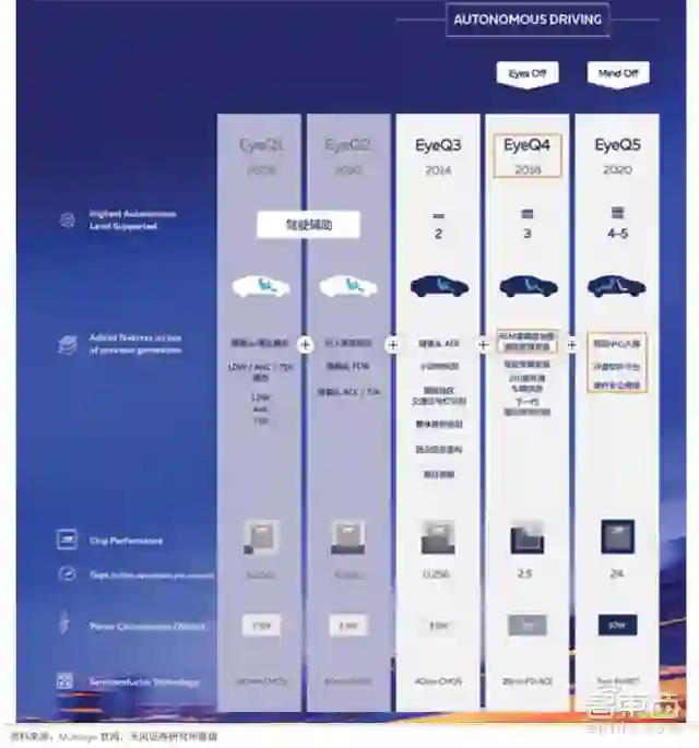 ▲EyeQ系列芯片参数介绍