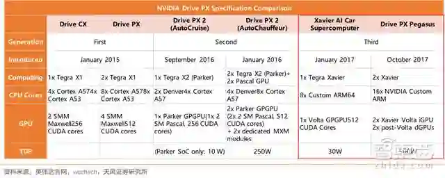 ▲英伟达三代自动驾驶平台性能比较
