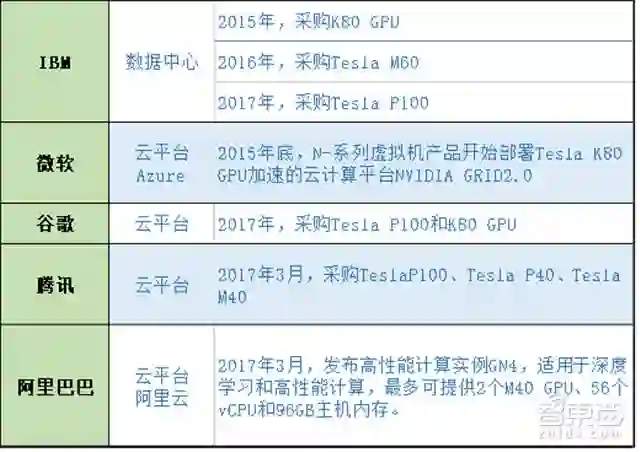 2011年,吴恩达率先将GPU用于谷歌大脑,发现12颗GPU可提供约2000颗CPU的深度学习性能,之后纽约大学、多伦多大学及瑞士人工智能实验室纷纷在GPU上加速其深度神经网络。