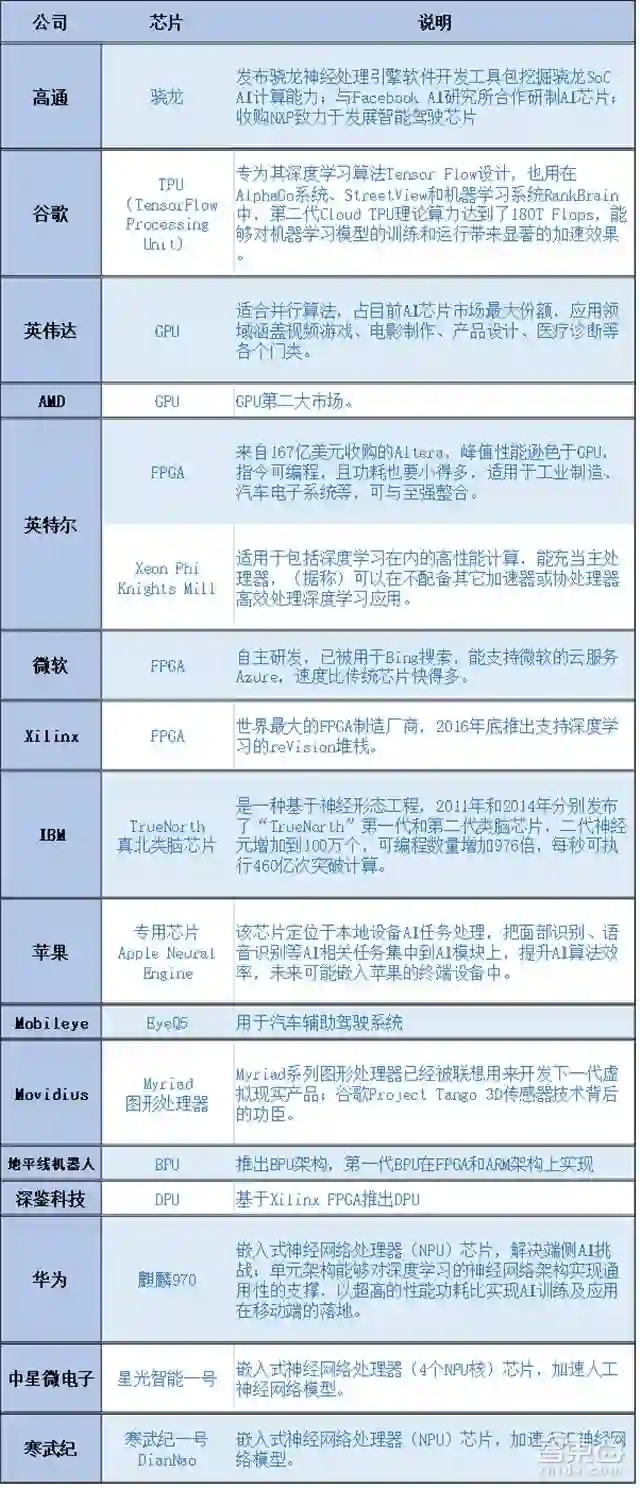 ▲典型AI芯片商一览