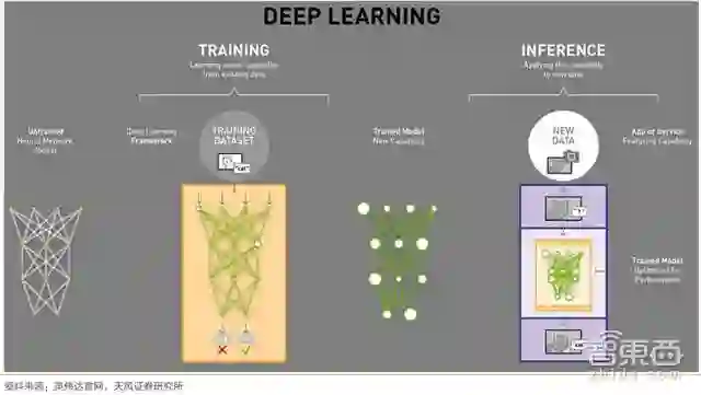 ▲深度学习在神经网络模型的应用中主要分为上游训练端和下游推理端