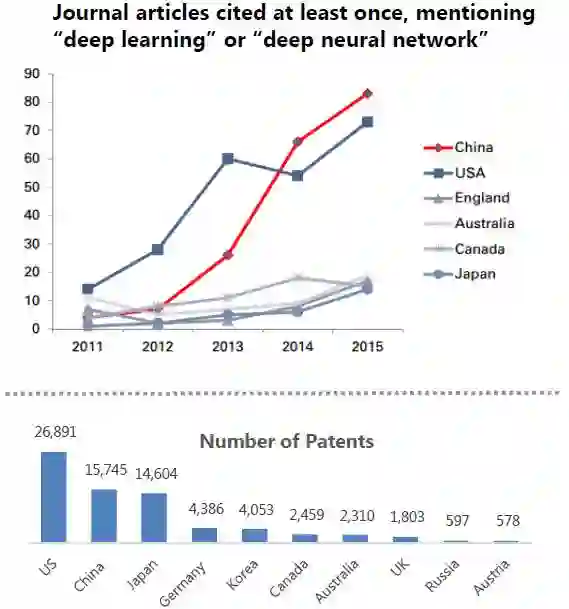 深度学习或深度神经网络期刊文章被引用至少一次&专利数量