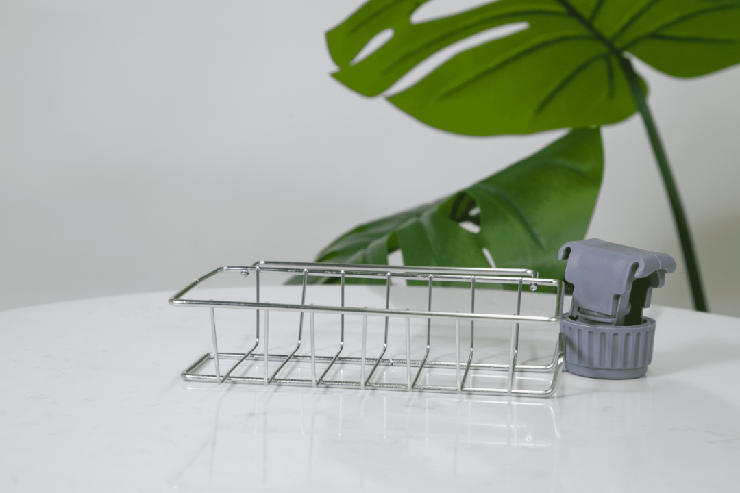 只需要往水龙头上一拧,就能稳稳挂住。平日把洗碗巾、钢丝球放在里面,不仅透气卫生还拿取方便。