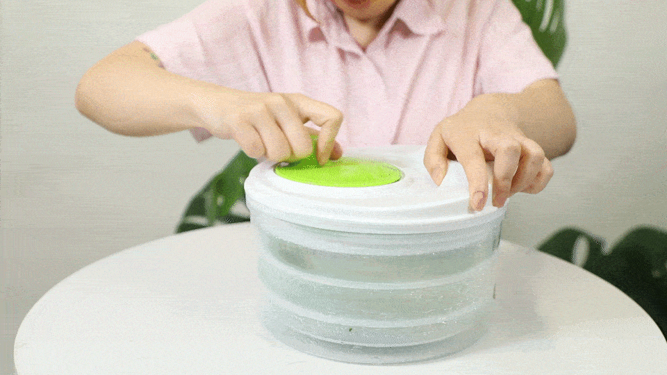 利用离心力就能把附着在蔬菜表面的水滴通通甩到外壁上。