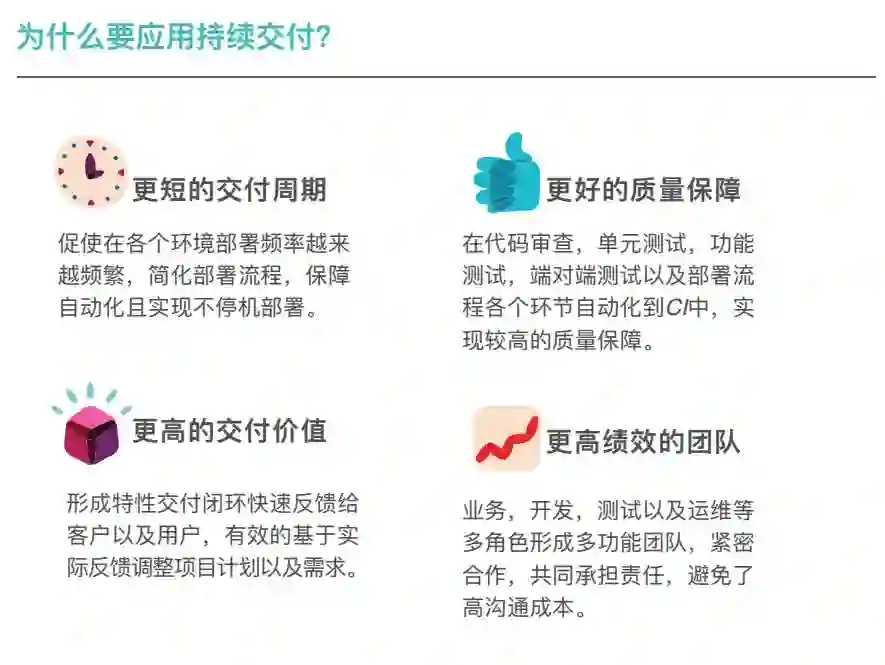 总的来说就是快速迭代,帮助我们更好的快速迭代。共四个方面:
