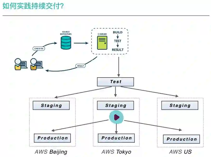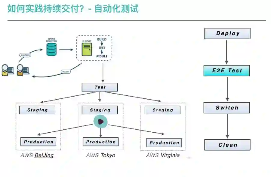 对比之前讲到的部署流程,基于AWS的跨区域部署在流程上有哪些区别?打包跑测试的流程几乎都一样,主要是部署不一样。