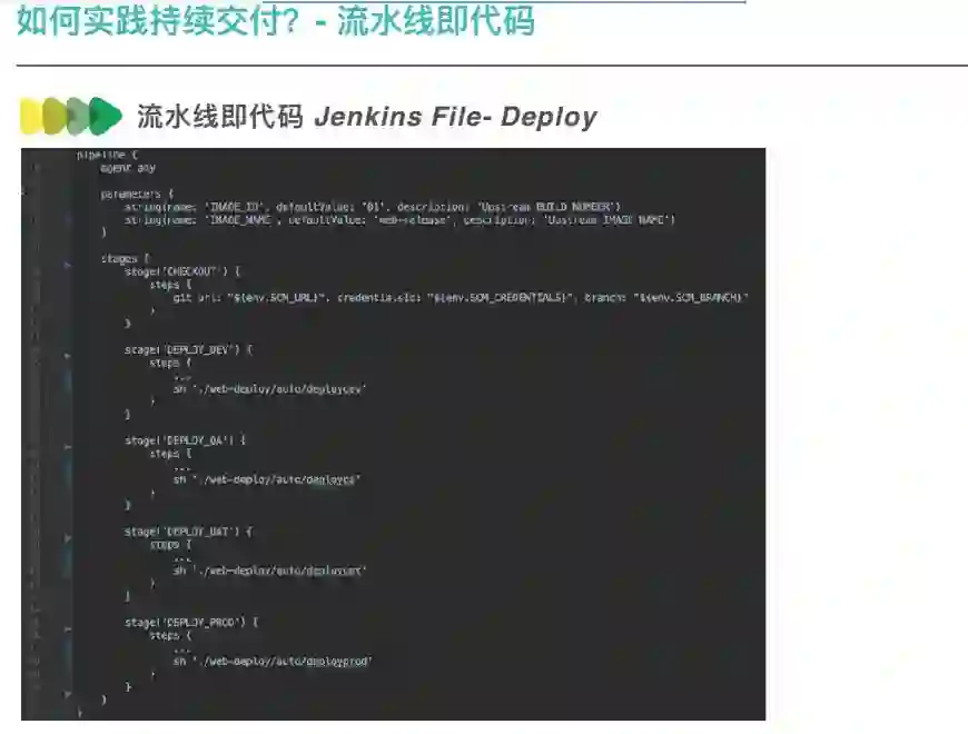 Deploy到不同的环境和配置,用代码的方式去定义流水线。