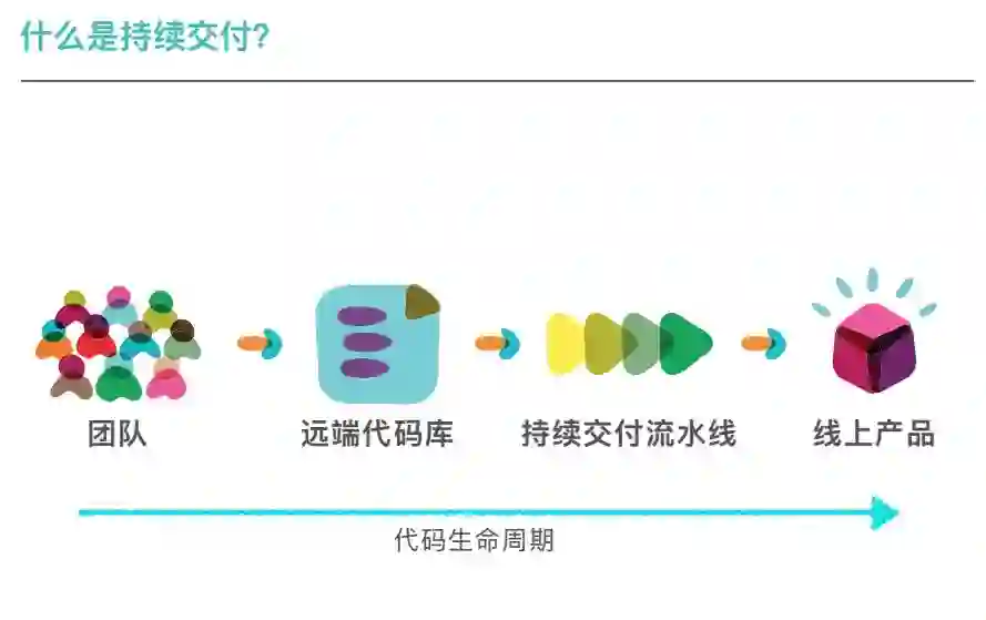 从一个代码的周期来看,我们默认是一个敏捷团队参与,在本地开发完成代码实现之后,会把它提交到远端的代码库。通过持续交付流水线,帮我们部署成一个线上产品。