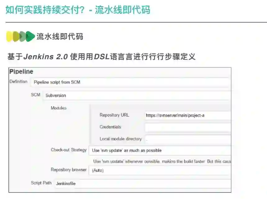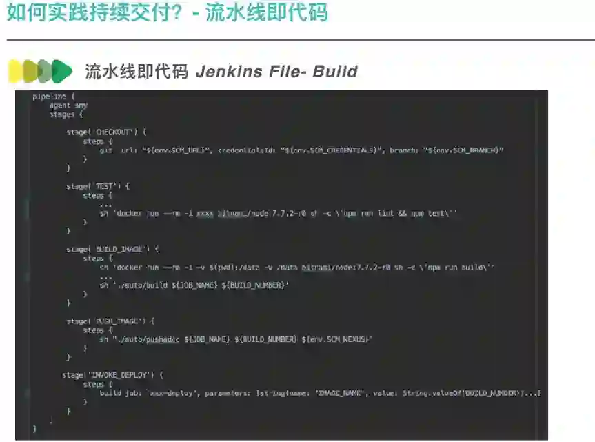 流水线即代码,我们是基于Jenkins2.0之后可以使用DSL语言进行行行步骤定义,大家可以具体的看脚本,帮你配置具体的并行流程是什么。