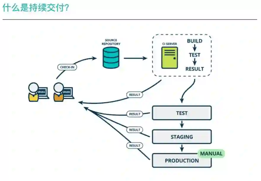 构建流程是开发人员在本地跑完测试之后将代码上传到远端的代码仓库,代码仓库会自动发送信号到持续集成服务器;