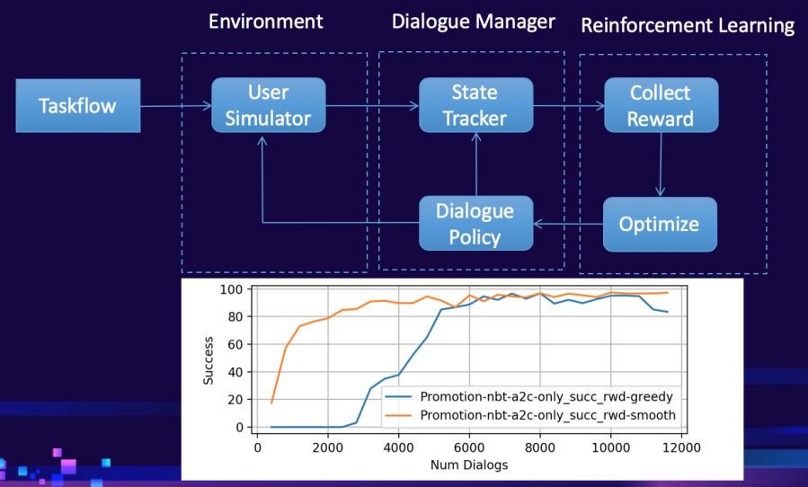 ▲ 图24. 小蜜Conversational AI团队的对话管理模型框架和评价指标