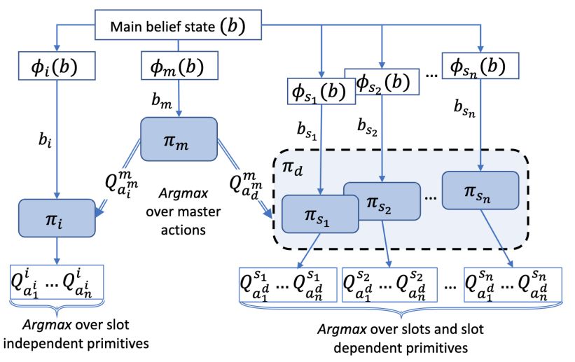 然而传统的对话管理模型在可拓展性方面仍需改进,具体在三个方面:1)如何处理变化的用户意图,2)如何变化的槽位和槽值,3)如何处理变化的系统动作。