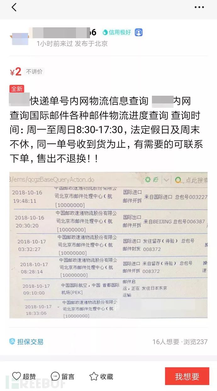 但是现在,除了上述的不可抗力因素影响,黑产也开始在快递物流背后捞钱…..