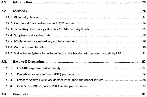 第二章:“通过考虑实验不确定性,使用概率随机森林(Probabilistic Random Forest)改善生物活性的二分类预测”。
