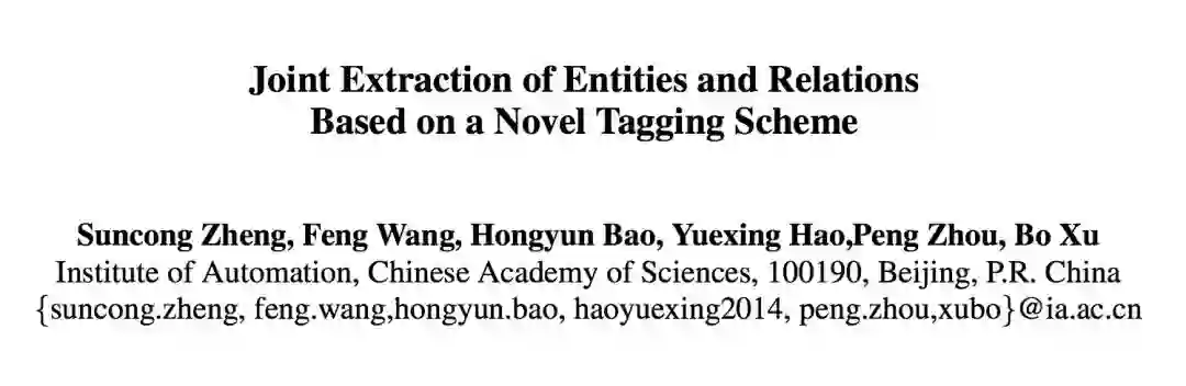 笔者本次复现的是中科院自动化所发表于 ACL 2017 的经典文章——Joint Extraction of Entities and Relations Based on a Novel Tagging Scheme。