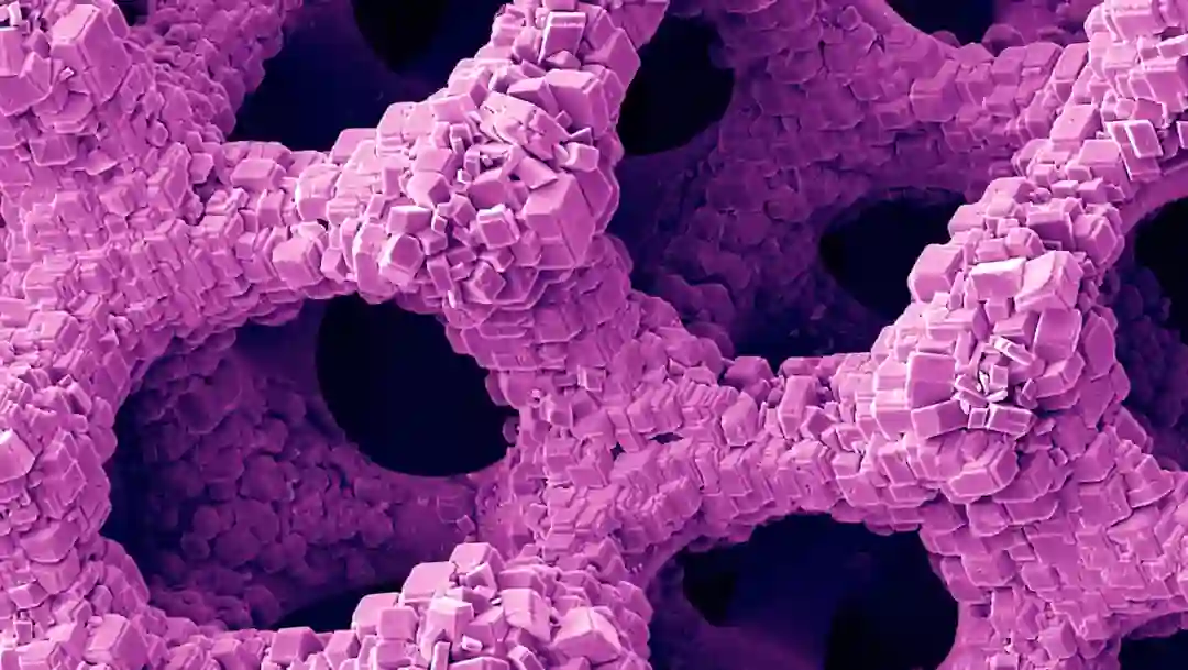 如果将这些材料放在显微镜下,我们会发现,它们之间充满了微小的空隙,以及复杂的几何结构。正是这些复杂的孔隙,让我们可以轻快地行走奔跑,且承受高强度的冲击。