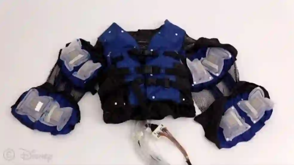 又比如,迪士尼研究院还跟麻省理工学院的研究人员合作,捣鼓了一款自带26个气囊的夹克,让用户可以体验多达10种触觉,比如挤压、拥抱、压力等。
