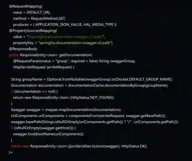 Swagger2Controller内部获取文档信息会去DocumentationCache中查找: