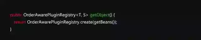 PluginRegistryFactoryBean是一个FactoryBean,其内部真正构造的bean的类型是OrderAwarePluginRegistry。OrderAwarePluginRegistry实例化过程中会调用create静态方法,传入的plugin集合使用aop代理生成一个ArrayList,这个list中的元素就是Spring上下文中所有的类型为之前遍历的Plugin的bean。