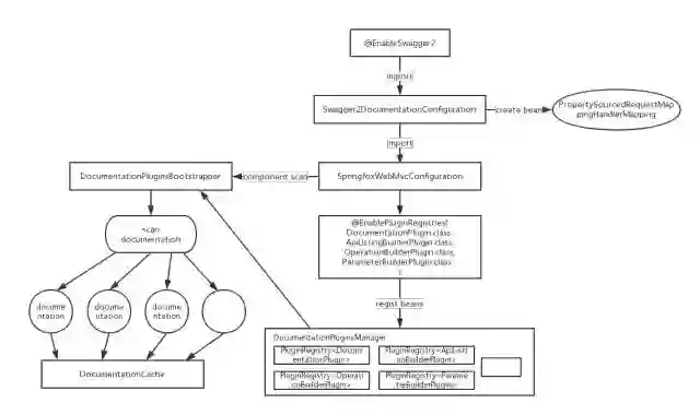 springfox通过spring-plugin的方式将Plugin注册到Spring上下文中,然后使用这些plugin进行API的扫描工作,这里的扫描工作其实也就是构造Documentation的工作,把扫描出的结果封装成Documentation并放入到DocumentationCache内存缓存中,之后swagger-ui界面展示的API信息通过Swagger2Controller暴露,Swagger2Controller内部直接从DocumentationCache中寻找Documentation。