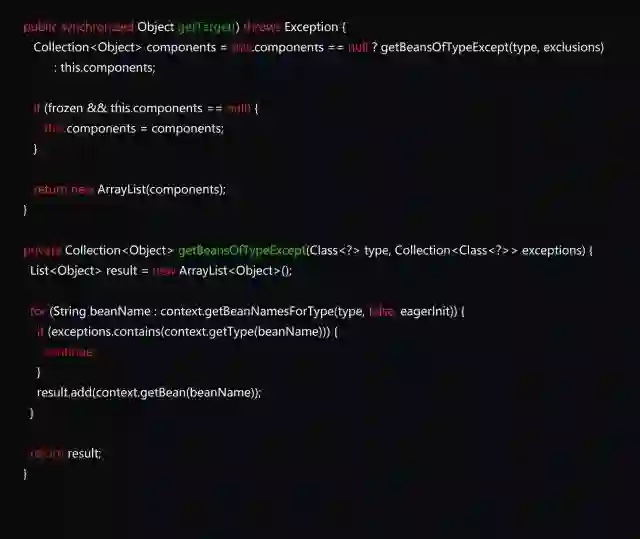 这里的targetSource是在PluginRegistryFactoryBean的父类AbstractTypeAwareSupport(实现了InitializingBean接口)中的afterPropertiesSet方法中初始化的(type属性在PluginRegistriesBeanDefinitionRegistrar注册器中已经设置为遍历的Plugin):