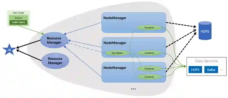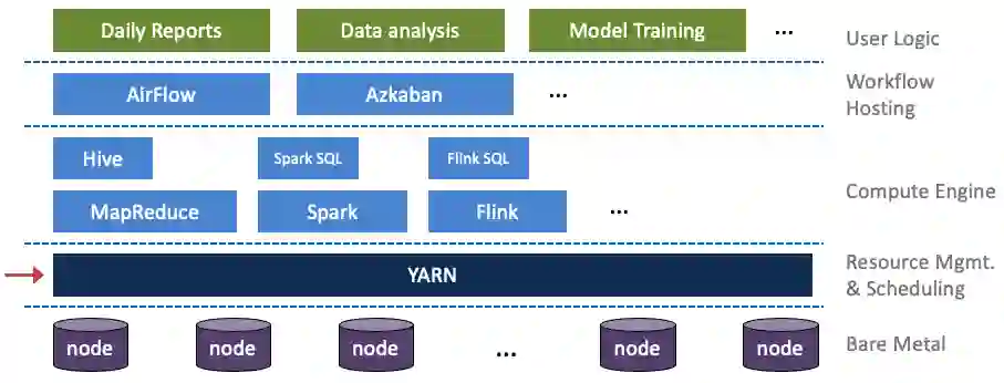 但是原生的 YARN 在达到 5K 节点规模时开始出现各种问题,比如说一次简单的切主可能会导致整个集群雪崩。