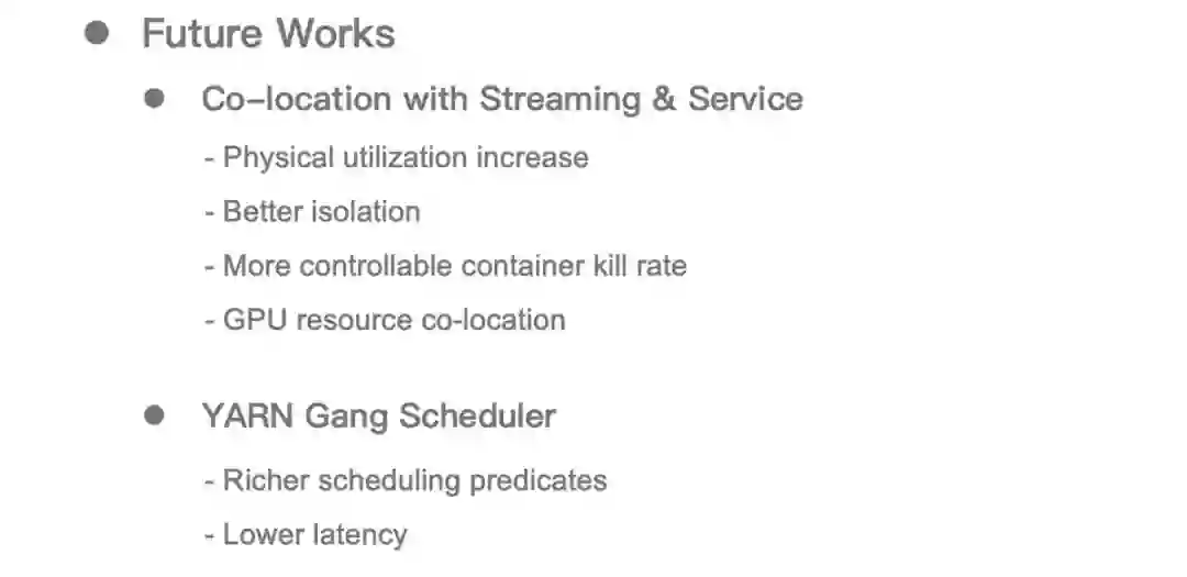 同时,我们也会继续完善 YARN Gang Scheduler,包括: