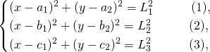 . 设目标点的GPS坐标为(x,y),那么我们有如下三个方程: