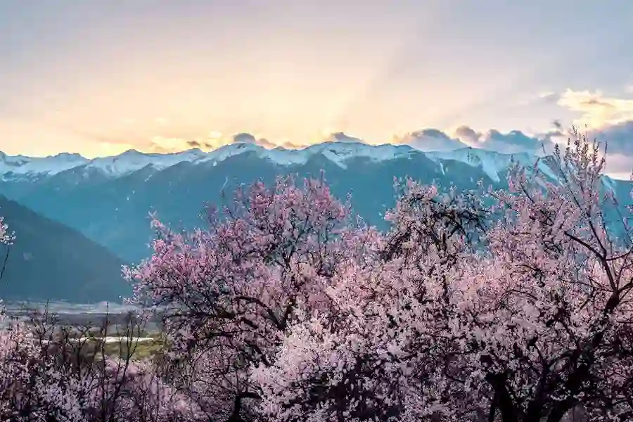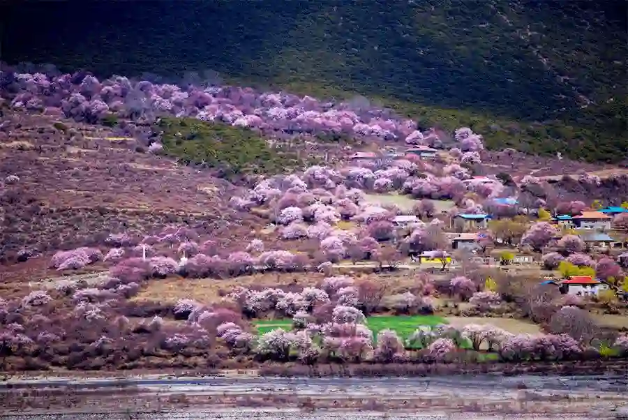 当西藏山峰上的雪还未化的时候,林芝宽阔平坦的草原上的百亩桃花已经静静绽放了。
