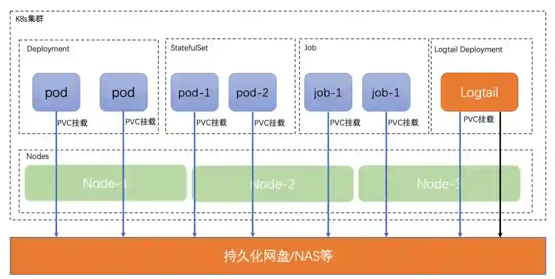 Deployment方式:当业务容器用PVC挂载日志目录或者需要全局连接API Server获取K8s元数据等场景,可以选择在集群中部署一个单副本的iLogtail Deployment进行数据采集。