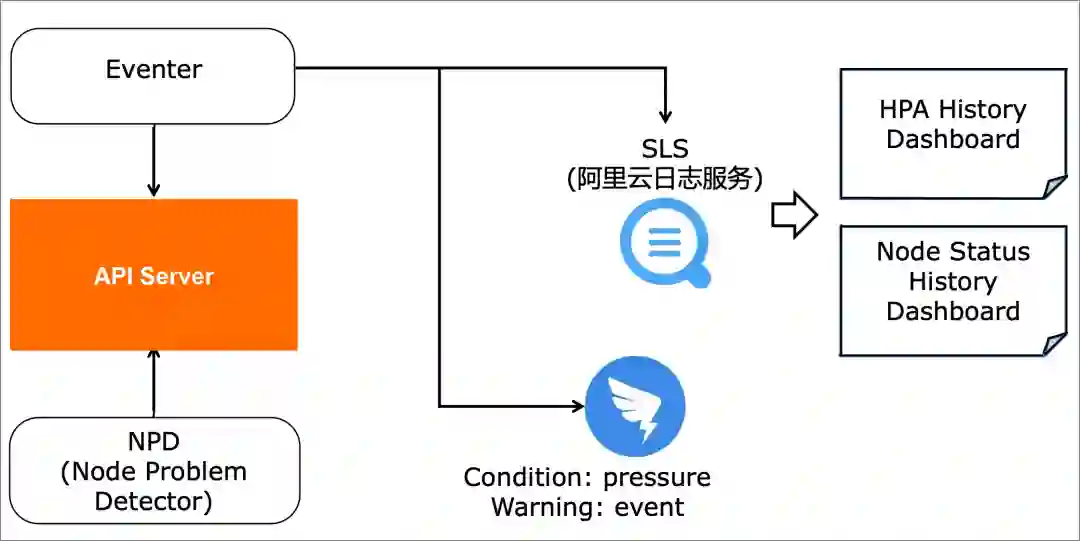 对系统中的异常事件做实时告警,例如Failed、Evicted、FailedMount、FailedScheduling等。