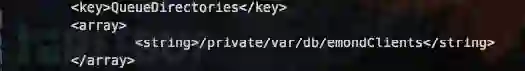 需要注意的是,第一个操作是睡眠10秒,这样是为了等待网络连接。至于是10秒还是20秒,因人而异,请自行斟酌。第二个就不用介绍了,建立会话。不过这样持久性机制还有一个奇怪之处:launchd会在启动过程中执行emond,但是在QueueDirectories路径中存在一个文件之前,服务将保持不活动状态。 这在LaunchDaemon配置文件/System/Library/LaunchDaemons/com.apple.emond.plist中指定。 放在QueueDirectories路径中的文件不需要遵循特定的命名方案,也可以为空。
