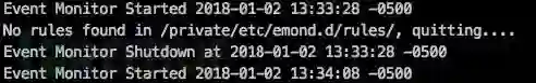 把plist文件放进rules目录后,emond错误日志会显示服务已启动,emond也不会提示说找不到任何规则。