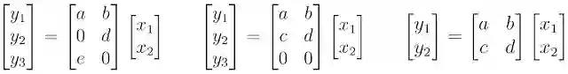 例如,考虑一下 MorphNet 如何计算神经网络的计算成本(如 FLOPs)。为简单起见,我们来思考一下被表示为矩阵乘法的神经网络层。在这种情况下,神经网络层拥有 2 个输入(x_n)、6 个权重 (a,b,...,f) 和 3 个输出(y_n)。使用标准教科书中行和列相乘的方法,你会发现评估该神经网络层需要 6 次乘法。