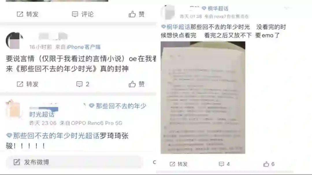 以《那些回不去的年少时光》为例,1月至今,豆瓣新增的书评就不下于80条,微博近一个星期新增的《那些回不去的年少时光》讨论不下于60条。点击最近分享的微博查看,都是十几岁的初高中在校生。