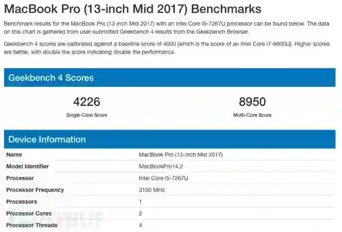 其性能相当于2017年中期的13寸MacBook Pro: