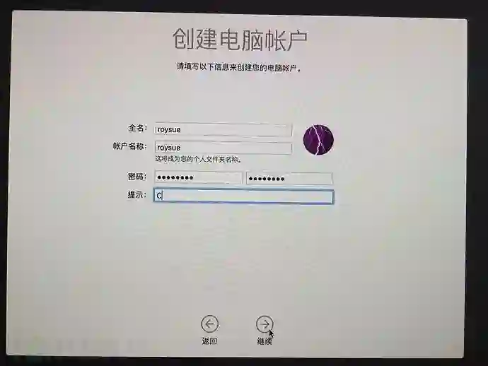 安装完之后系统会重启一次,进入阶段二的安装。这时候不用拔U盘,还是用U盘的clover来引导,选择Boot macOS Install from MacSSD,MacSSD是刚刚设置的磁盘名字,进入阶段二的安装。阶段二也就是阶段一的延续。