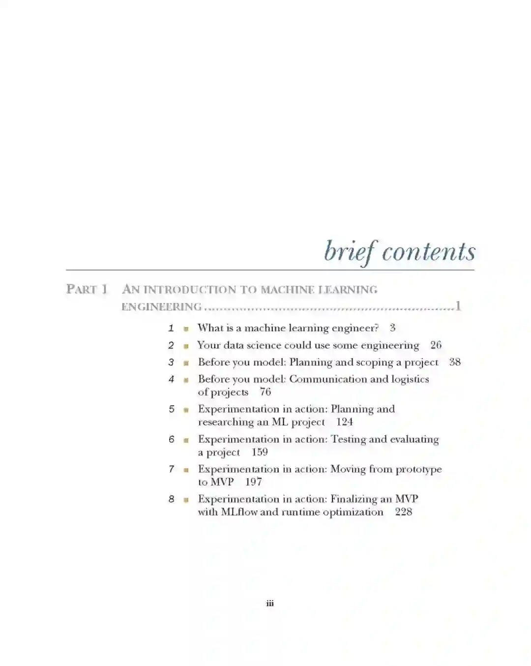 - 第1部分(第1 - 8章)主要从团队领导、经理或项目领导的角度关注ML项目的管理。它为范围、实验、原型和包容性反馈制定了蓝图,以帮助您避免陷入构建解决方案的陷阱。